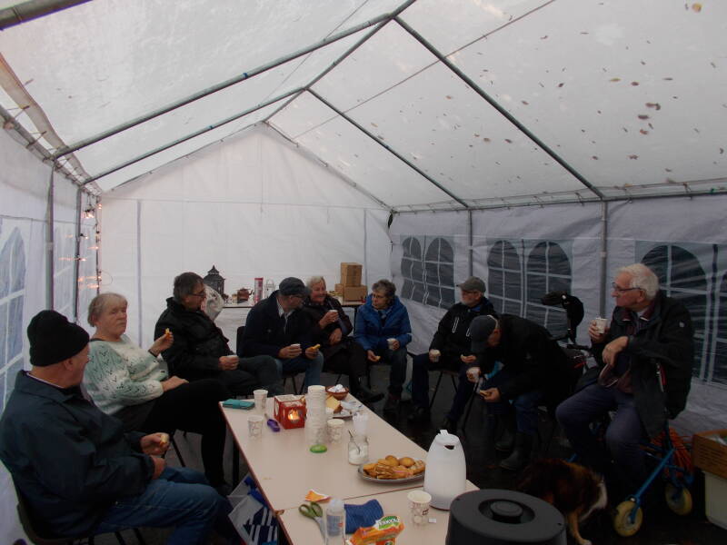 Op de verzamelplaats staat een tent waar men een kopje koffie of thee kan gebruiken, even kan rusten en praten. Ook zijn er in de tent kaarsen verkrijgbaar en is er informatie over de begraafplaats en het werk van de Vrijwilligers Begraafplaatsen.