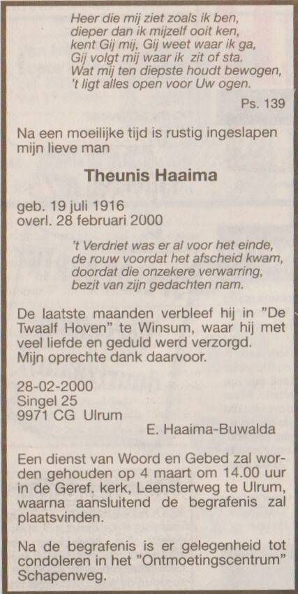 Haaima, Theunis
