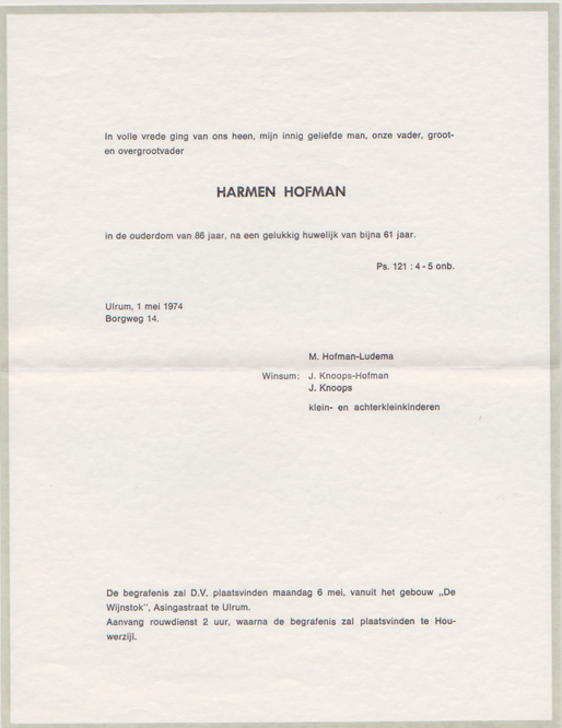 overl.; 21-05-1917 te Ulrum , 45 jaar oud