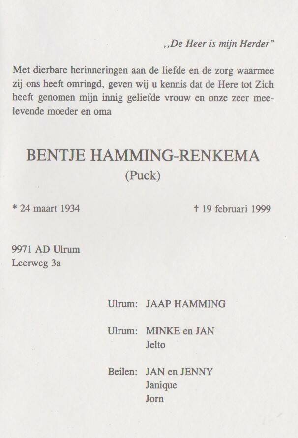 Renkema , Bentje
