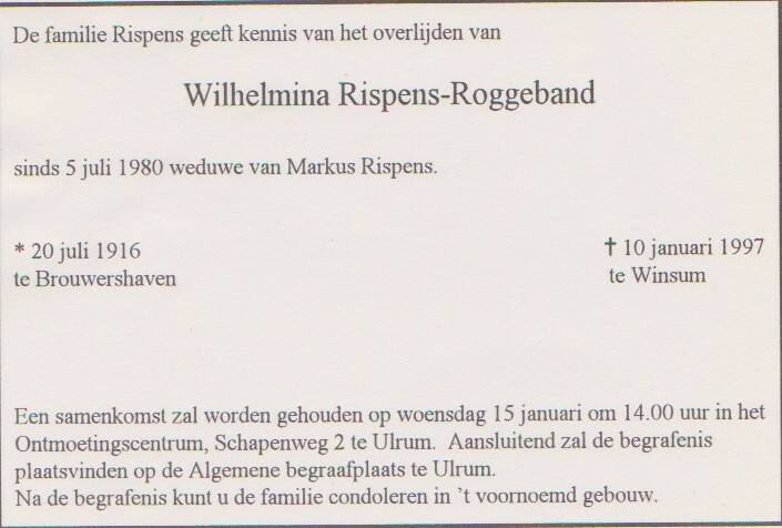Roggeband , Wilhelmina