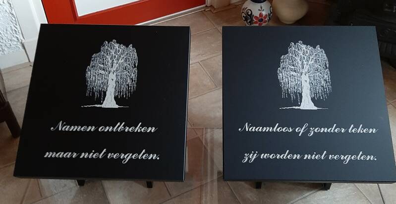 Dankzij deze gift hebben in overleg met deze vereniging de "rustplek" kunnen voorzien van plexiglas, en we hebben 2 prachtige herdenkingsplateaus laten maken. Binnenkort worden deze geplaatst op de begraafplaatsen.