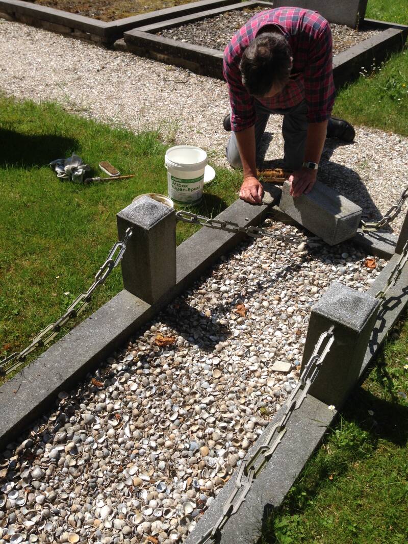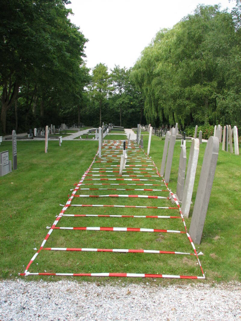 uitmeten en vastleggen indeling kindergrafjes 2013 , vak BB rij 5