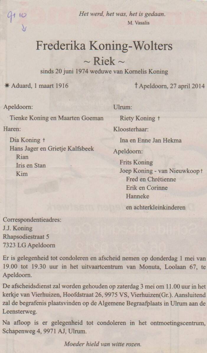 d.v.; Jan Wolters en Dieuwertje Wierenga